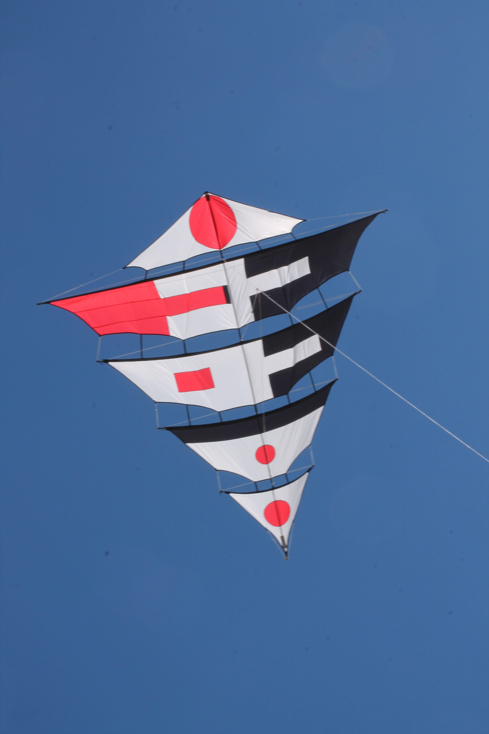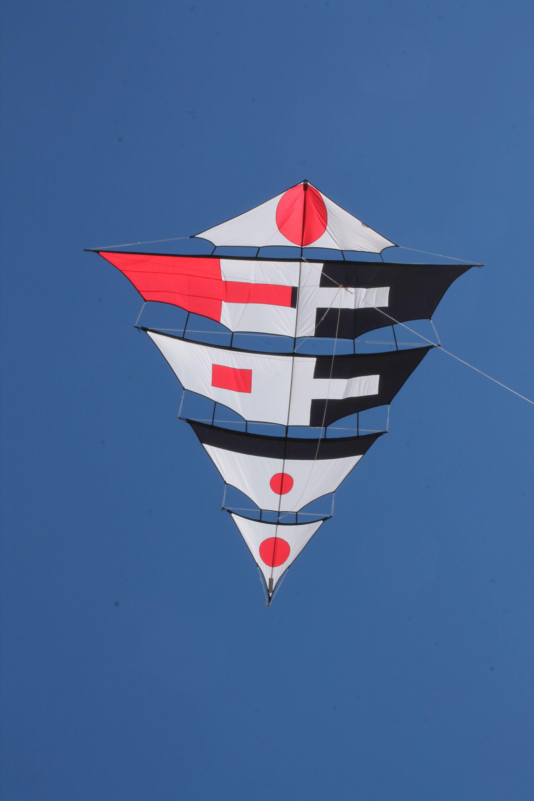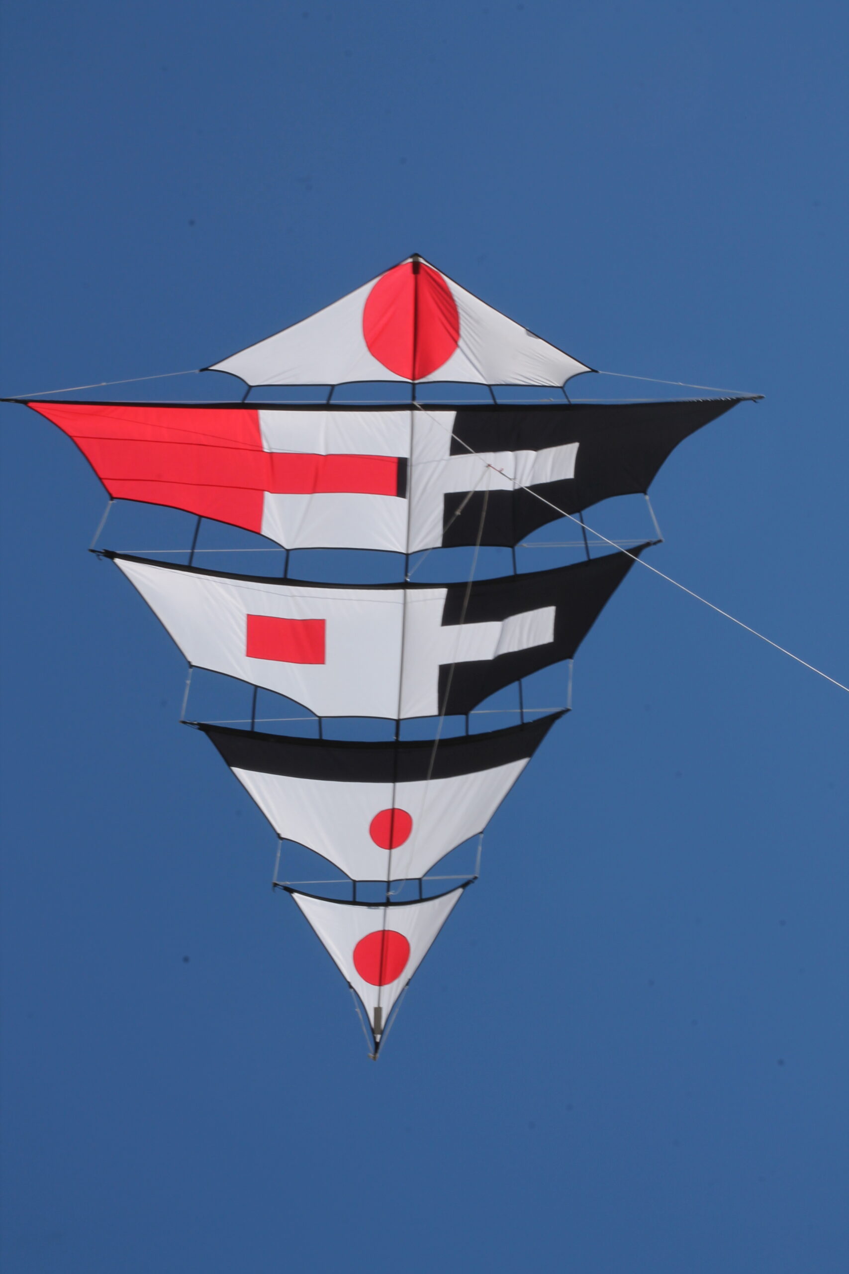 Der Drachen hatte seinen Erstflug 2004 bei meinem dritten (3) Besuch zum Drachenfest auf Fanø. Im Vergleich zum Mezger, benötigt und verträgt dieser durchaus etwas mehr Wind. Allerdings beansprucht er , zumindest anfänglich, etwas mehr Geduld beim Aufbau 😯 .