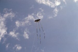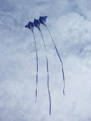 Der Tribird, ist/war eine Crossdeck Variante von Colours in Motion. D.h. der klassische Crossdeck bekam zusätzliche Zellen. Diese sollten optisch wohl einem „Vogel“ mit mehreren Körpersegmenten gleichen. Daher der etwas ungewöhnliche, weil außerhalb der Crossdeck-Familie lautende Name. Wahrscheinlich auch abgesehen von Lizenzen u.ä. 🙄 Unabhängig davon hatte ich 2011 auf einem Drachenfest auf dem Colours in Motion mit einem Verkaufsstand vertreten war, die Gelegenheit diesen doch relativ großen Kastendrachen zu kaufen. Es hat dann einige Zeit gedauert bis ich das „Crossdeck Pärchen“ von CIM mit dem normalen Crossdeck vervollständigen konnte.