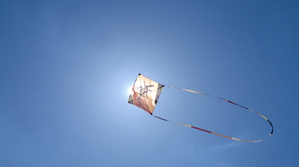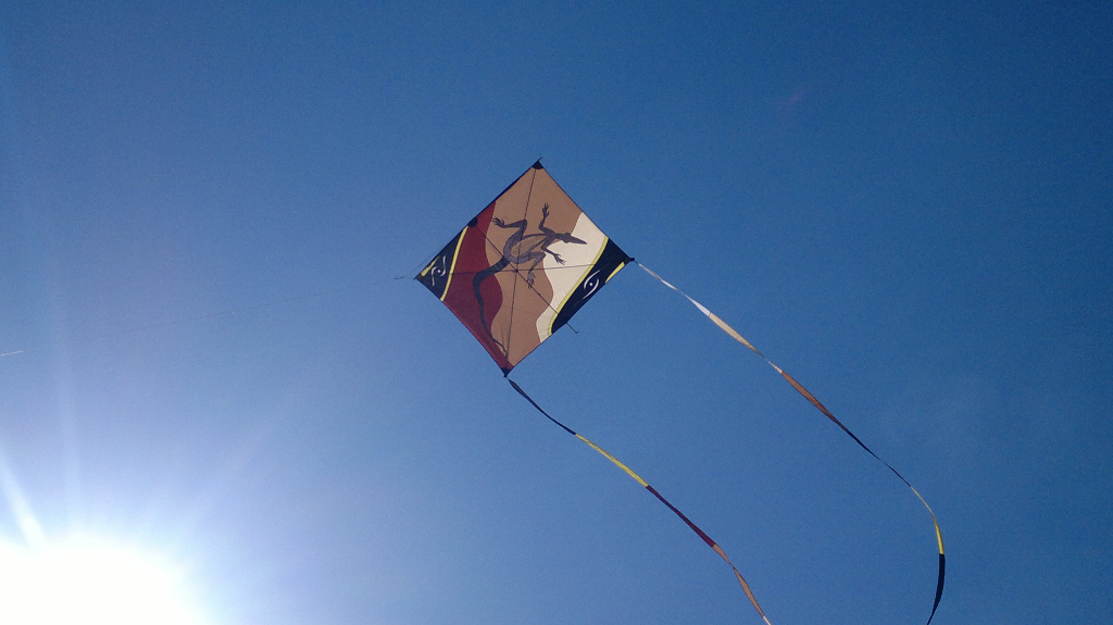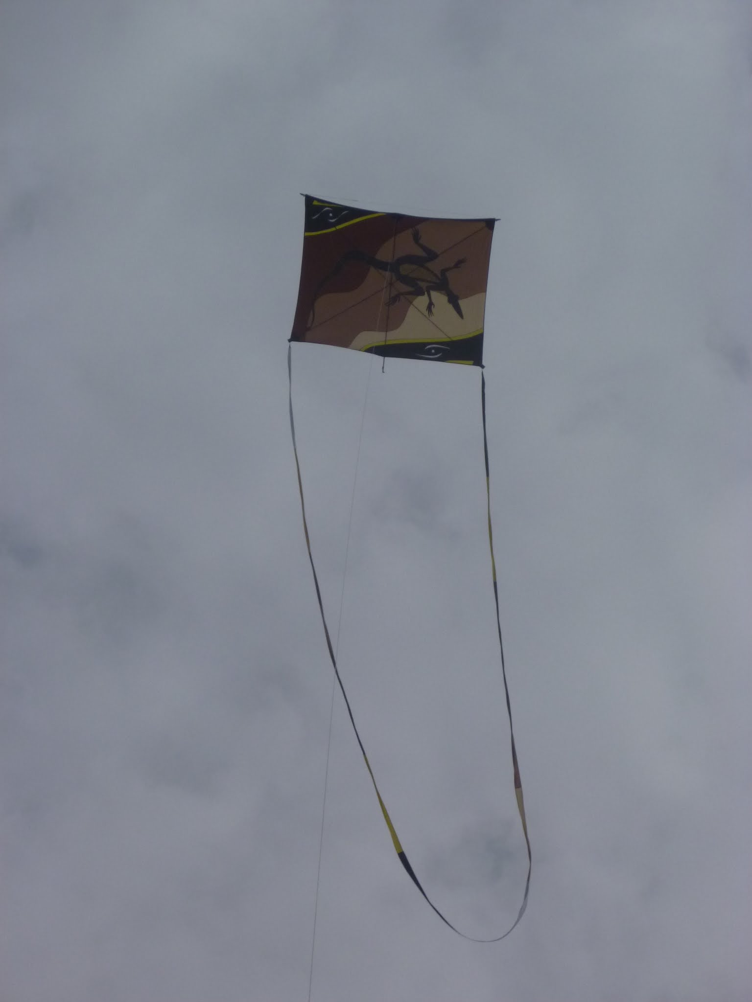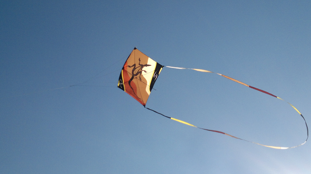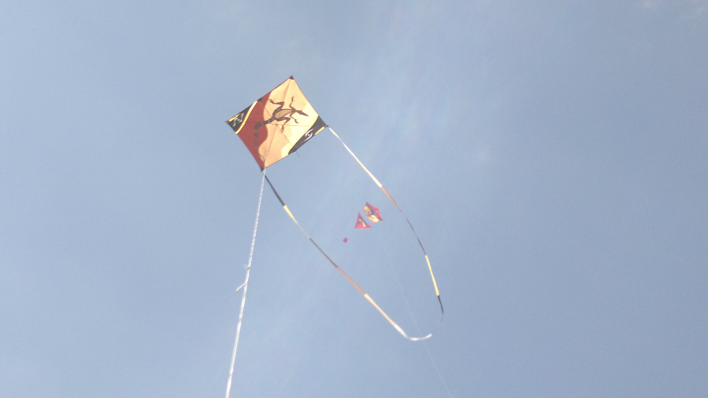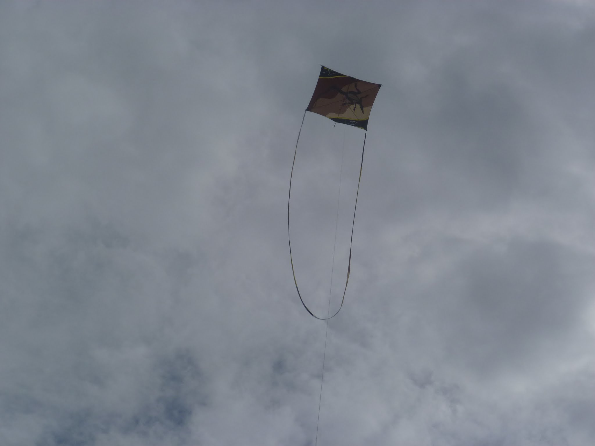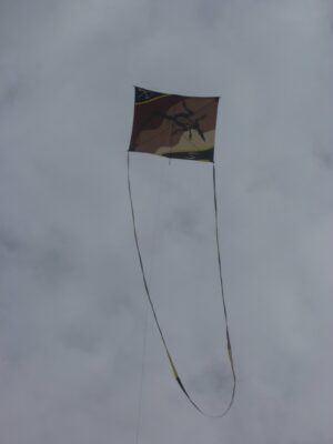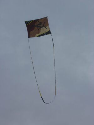Zumindest konnte ich mir diesen leicht vozuspannenden Flachdrachen sichern und wenn ich ihn dann in den Himmel stelle ist er ein wahres Fest. Das Motiv, der Fransenschwanz und wenn es wirklich gut läuft 😈 auch das Flugverhalten 😉 sind einfach nur klasse.