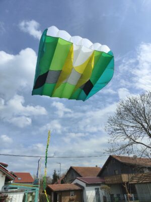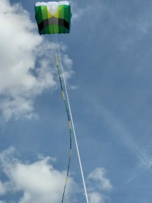 Zum Drachen selbst gibt es nicht viel mehr zu sagen als zu dessen großen Bruder. Wenn es einen stabilen Lifter gibt, dann ist es die KAP-Foil von Ralf Beutnagel 😮 . Natürlich muss man das, durch den zwingend notwendigen Schwanz, höheren Gewicht einbeziehen aber bei entsprechenden Winden ist das zu vernachlässigen. Die effektiven Unterschiede liegen natürlich in der Zugkraft und der Windstärke die mit dieser Variante bedient werden kann. Drei (3) Quadratmeter machen hier doch schon etwas aus und somit lässt sich dieser Lifter eben auch bei etwas mehr Wind problemlos in die Luft aber auch wieder herunter bringen.